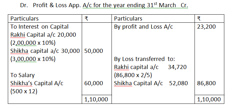5. Rakhi and Shikha are partners in a firm, with capitals of Rs.2,00,000 and Rs.3,00,000 respectively. The profit of the firm, for the year ended 2016-17 is Rs.23,200. As per the Partnership agreement, they share the profit in their capital ratio, after allowing a salary of Rs.5,000 per month to Shikha and interest on Partner’s capital at the rate of 10% p.a. During the year Rakhi withdrew Rs.7,000 and Shikha Rs.10,000 for their personal use. AS per partnership deed, salary and interest on capital appropriation treated as charge on profit. You are required to prepare Profit and Loss Appropriation Account and Partner’s Capital Accounts.