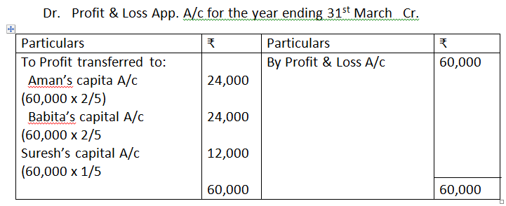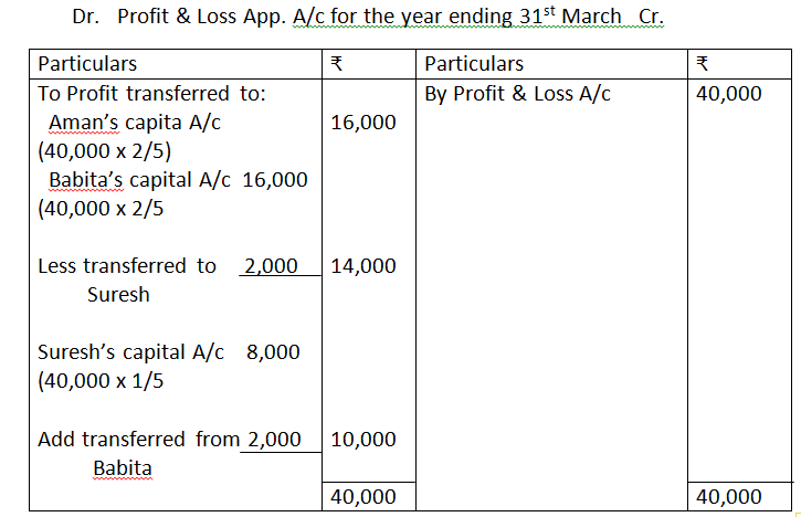 9. Aman, Babita and Suresh are partners in a firm. Their profit sharing ratio is 2:2:1. Suresh is guaranteed an amount of Rs.10,000 as share of profit, every year. Any deficiency on that account shall be met by Babita. The profits for two years ending March 31, 2019 and March 31, 2020 were Rs.40,000 and Rs.60,000, respectively. Prepare the Profit and Loss Appropriation Account for the two years.