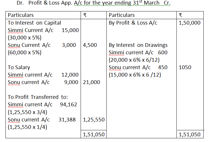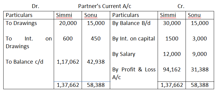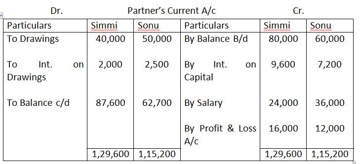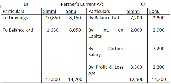 6. Partners’ salaries : Simmi Rs.12,000 and Sonu Rs.9,000.
