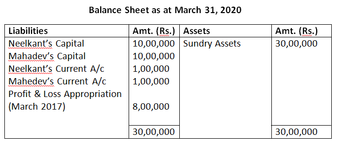 17. Following is the extract of the Balance Sheet of, Neelkant an Mahedev as on March 31, 2020;