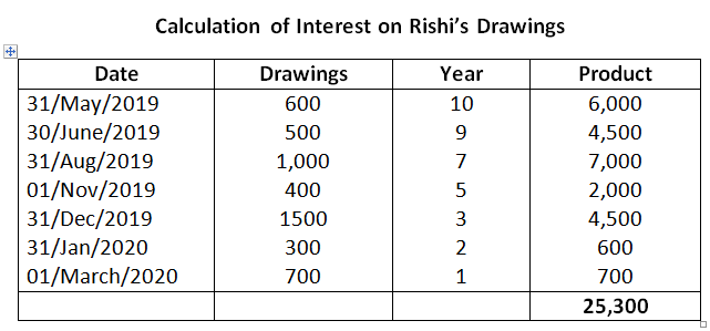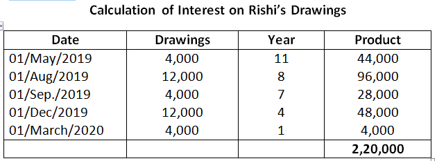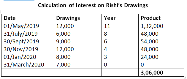Interest on Rishi’s Drawings = 3,06,000 x 9% x 1/12