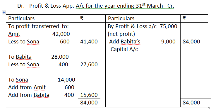 Amit’s Share in profit = 84,000 x 3/6