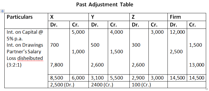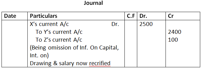 - Interest on drawings amounting to X Rs.700, Y Rs.500 and Z Rs.300.