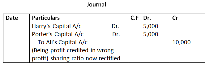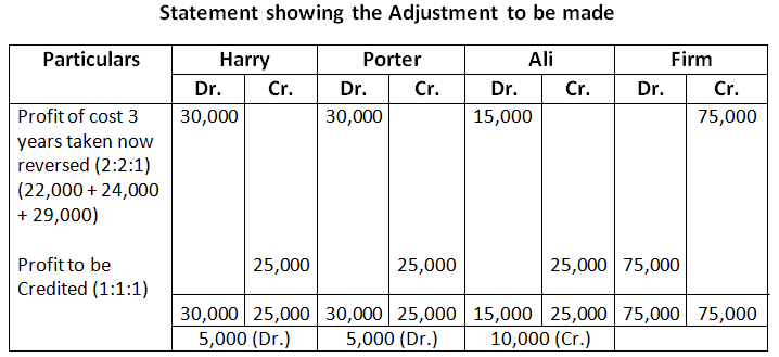 38. The firm of Harry, Porter and Ali, who have been sharing profits in the ratio of 2:2:1, have existed for same years. Ali wants that he should get equal share in the profits with Harry and Porter and he further wishes that the change in the profit sharing ratio should come into effect retrospectively were for the last three year. Harry and Porter have agreement on this account.