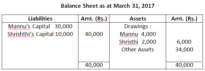 39. Mannu and Shristhi are partners in a firm sharing profit in the ratio of 3:2. Following is the balance sheet of the firm as on March 31, 2017.
