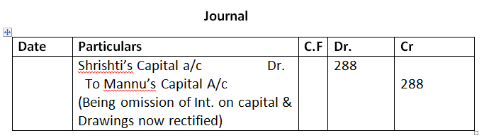Shrishti’s Interest on capital = 8,000 x 5%