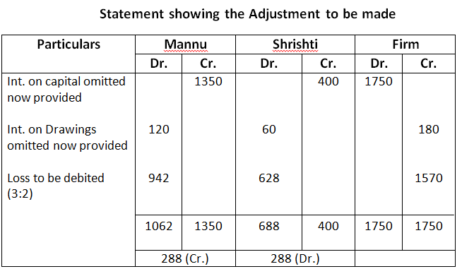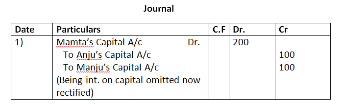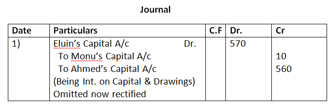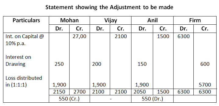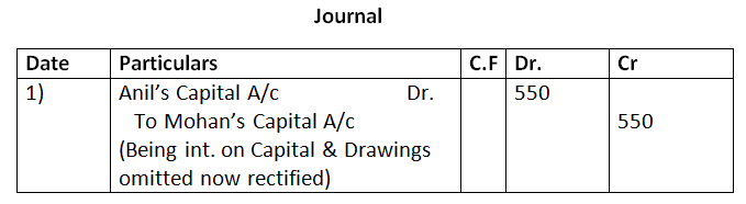 - Interest on Drawings : Mohan Rs.250, Vijay Rs.200, Anil Rs.150 was not recorded in the books.