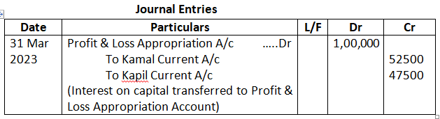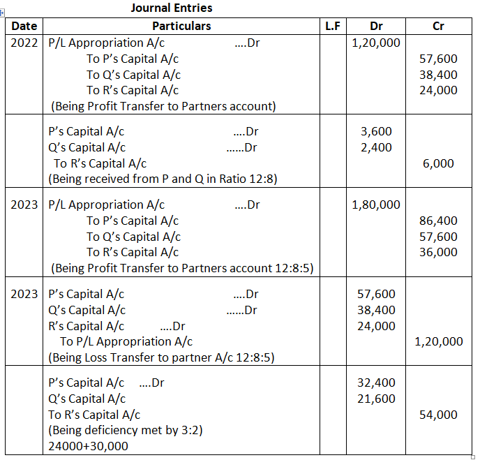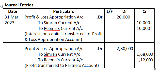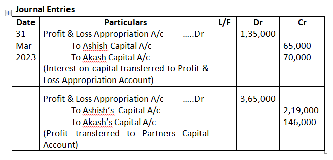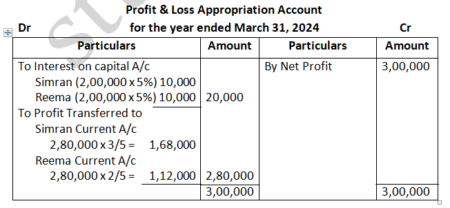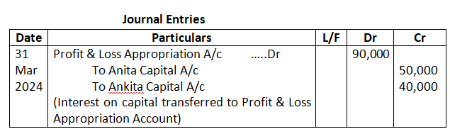 Pass the Journal entries in the books of the firm for the year ended 31st March, 2024.