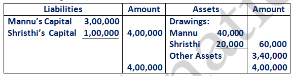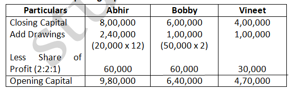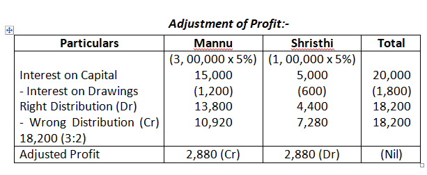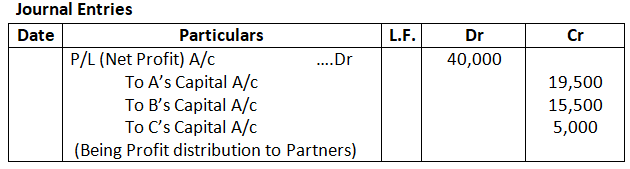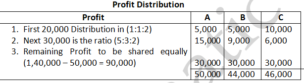 - In the absence of Partnership Deed, Profit should be distributed in equal ratio not in proportion of capital.