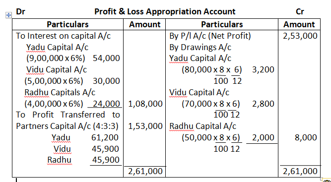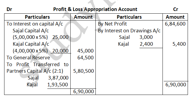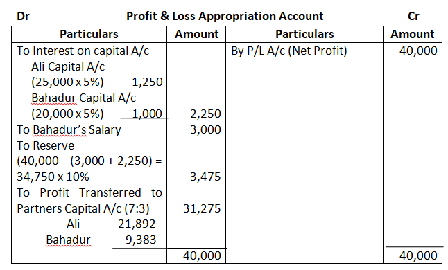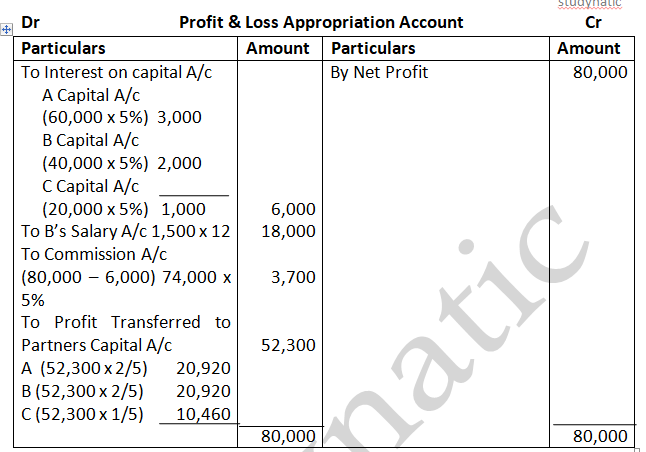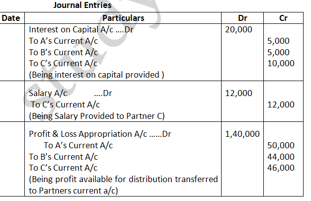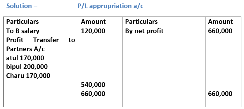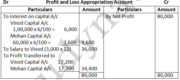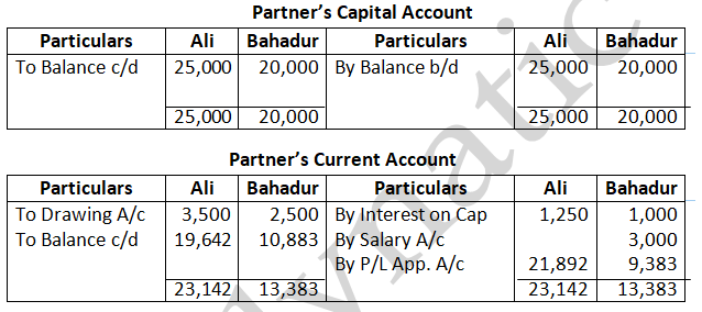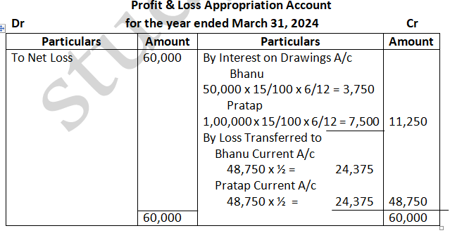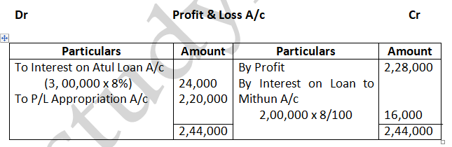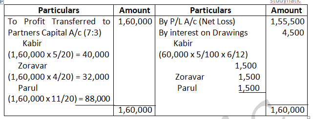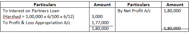 Solution – According to Partnership act, 1932 absence of partnership deed. Interest on partners Loan will be allowed at 6% p.a. Ratio = 3:2