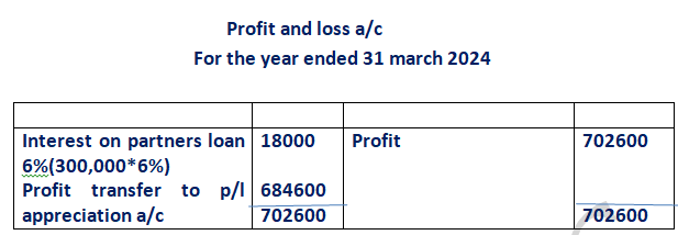 Firm earns profit of 1, 03,000 (before above adjustments) for the year ended 31st March, 2024. Show the distribution of profit for the year.
