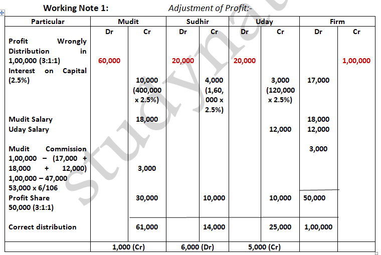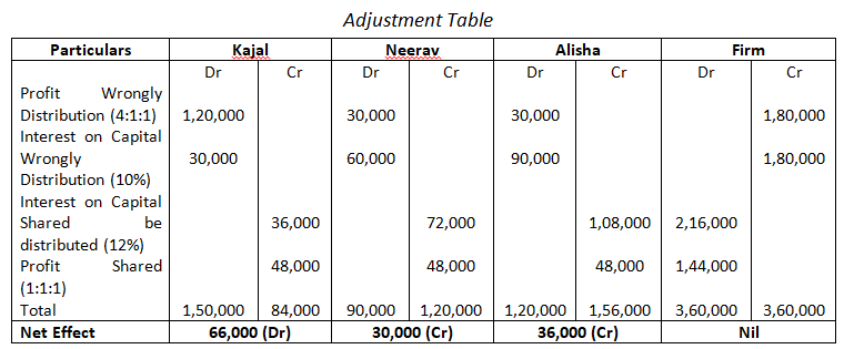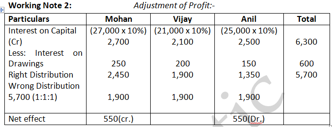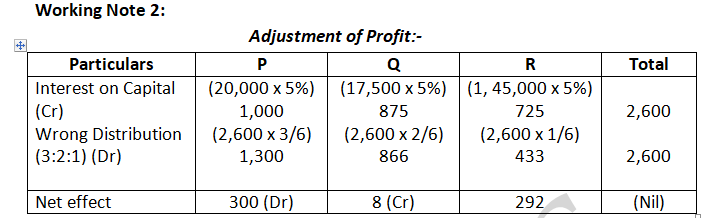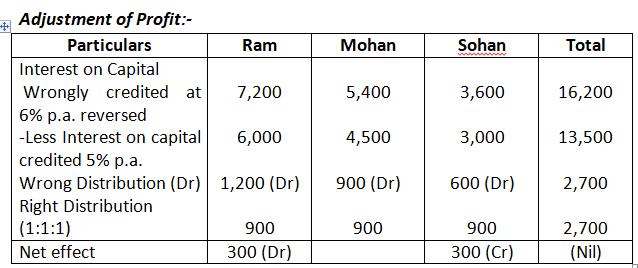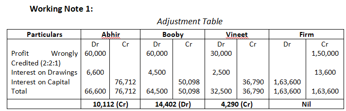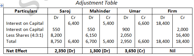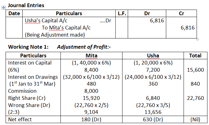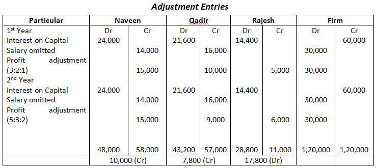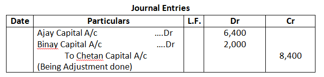 Pass the necessary Journal Entry for the above adjustments in the books of the firm. Show working clearly.