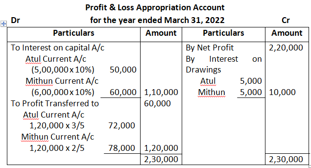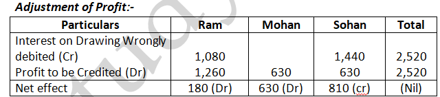 - No interest on drawing would be charged as in the case of absence of partnership deed. Provisions of Indian Partnership Act 1932 would apply.