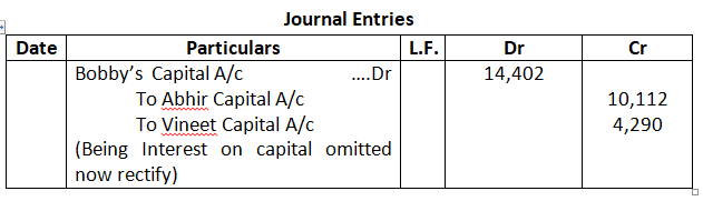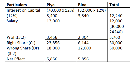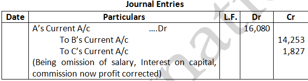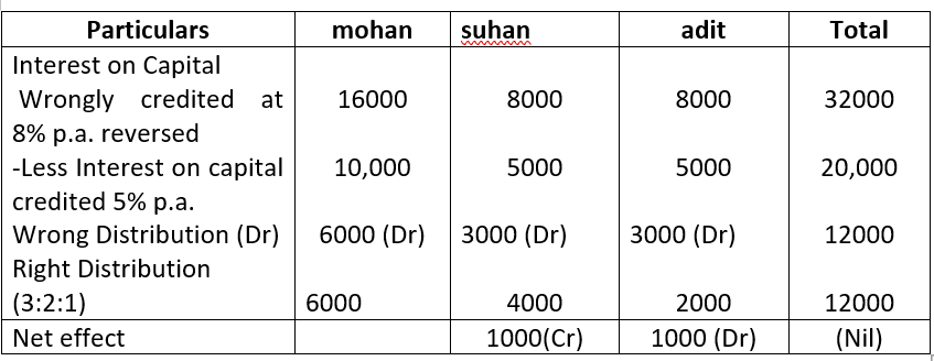 The profit of the firm for the year ended 31st March, 2015 was 1, 50,000 which was distributed among Ajay, Binay and Chetan in the ratio of 2:2:1, Without taking into consideration the provision of partnership Deed .Pass necessary rectifying entry for the above adjustments in the books of the firm. Show your working clearly.