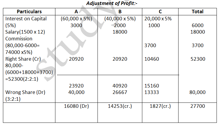 Profit Distribution = 1, 80,000 (4:2:3)