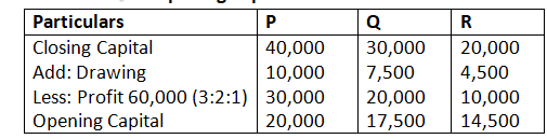 Q’s capital a/c 1,31,250-10,000=121250
