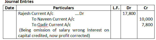 You are required to pass the necessary Journal entries to rectify the error in accounting.