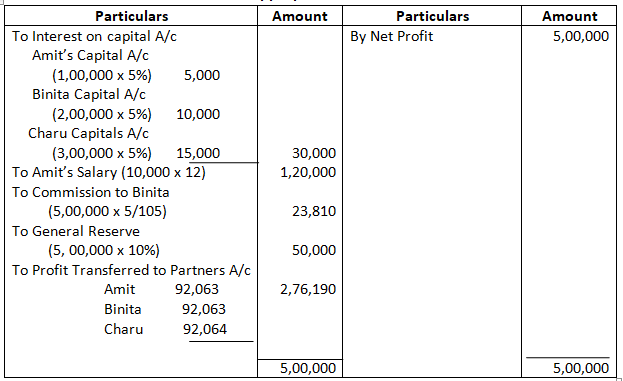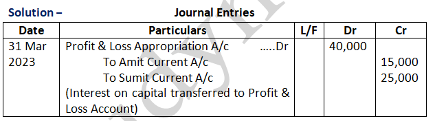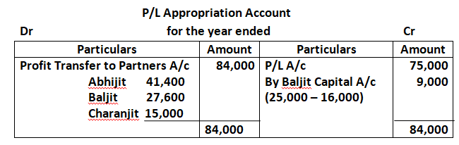 The profit for the first year of the partnership is 75,000. The gross fee earned by Baljit for the firm is 16,000. You are required to show Profit & Loss Appropriation Account after giving effect to the above.