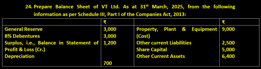 23.Prepare Balance Sheet of Recovery Ltd. As per Schedule III of the companies Act, 2013: