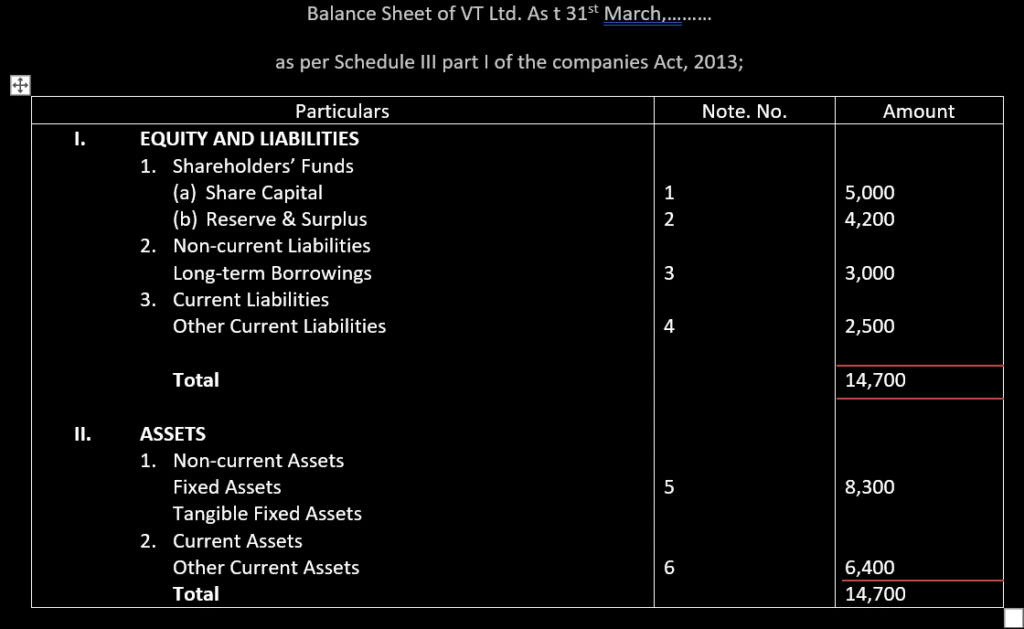 - Reserve and Surplus under Shareholder’s Funds;