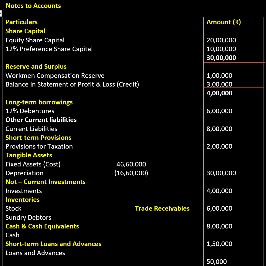 Ans.:- Notes to Accounts