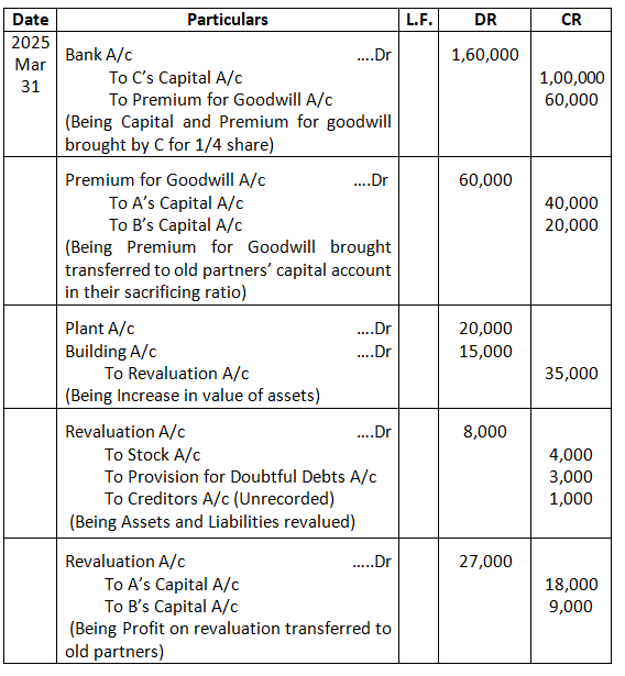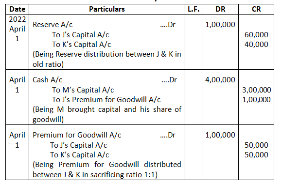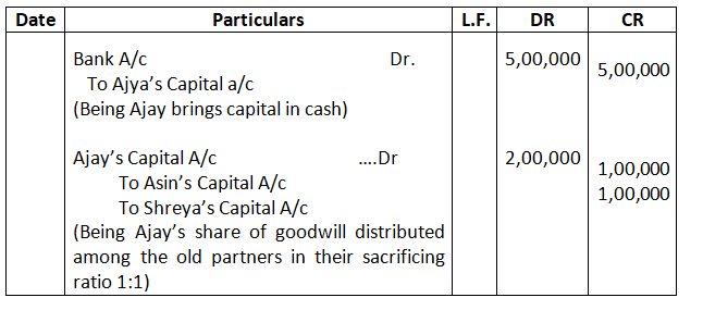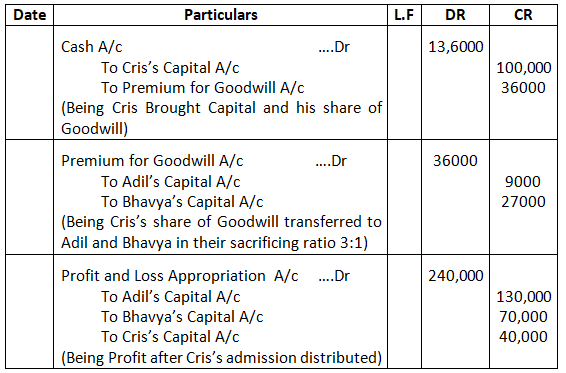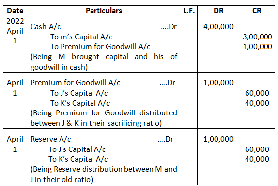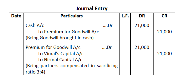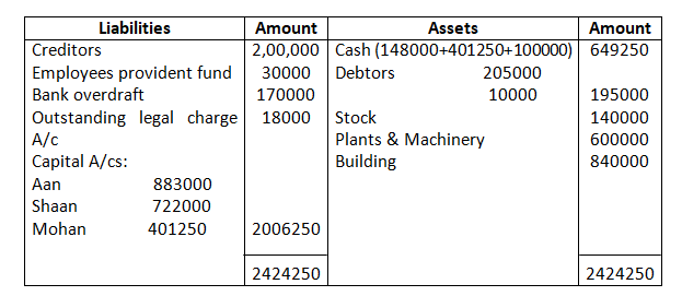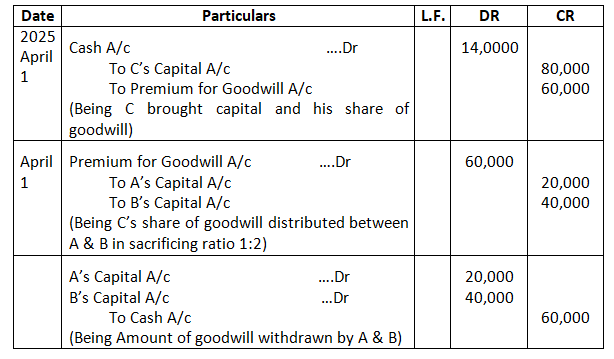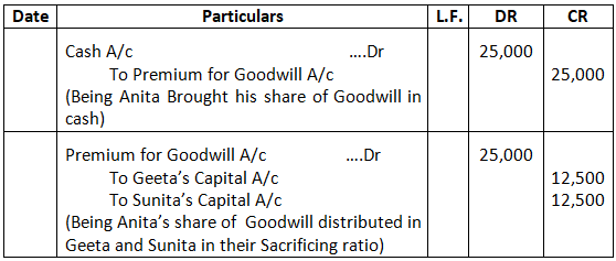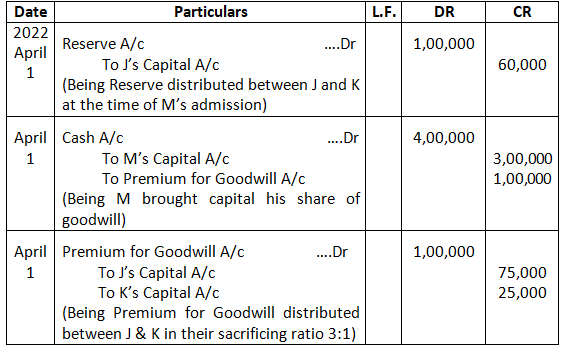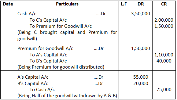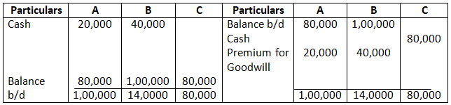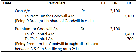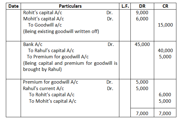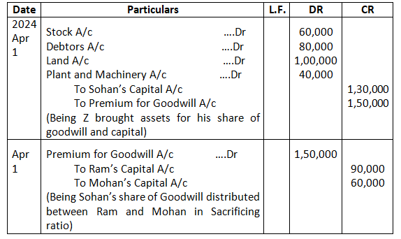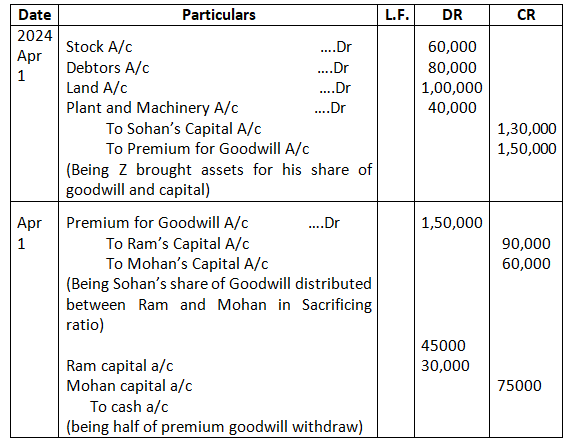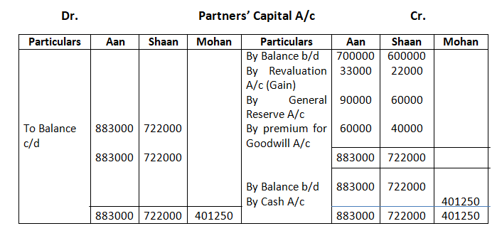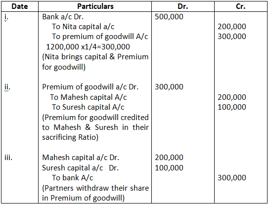 • Mohan’s share of goodwill premium was calculated as Rs.1,00,000.