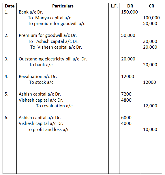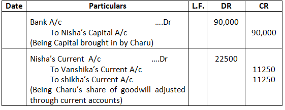 5. Saloni will bring 42,000 as her share of goodwill premium and proportionate capital.