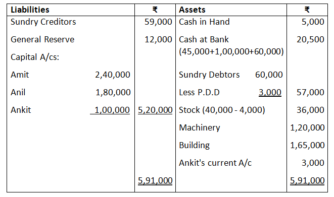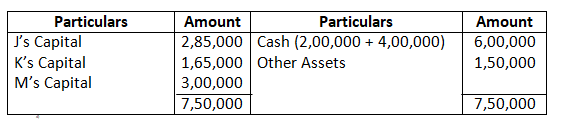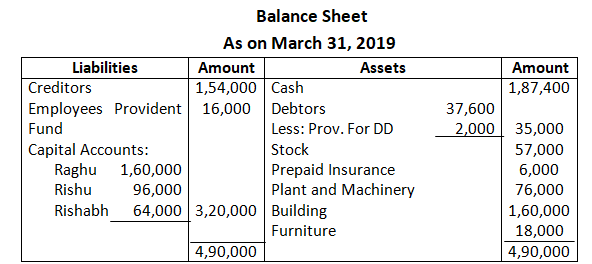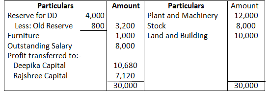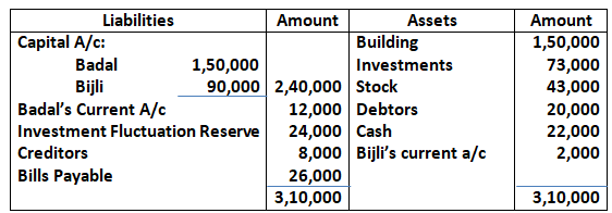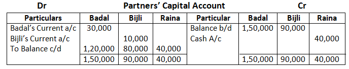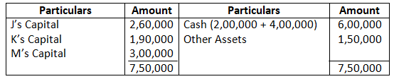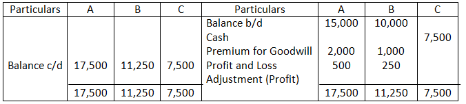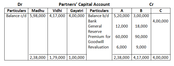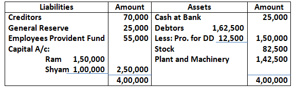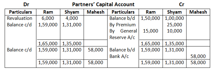 Adjusted capital of Ram and Shyam – 1, 59,000 + 1, 31,000 – 2, 90,000