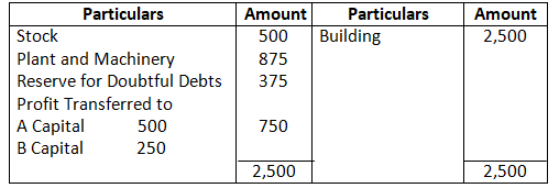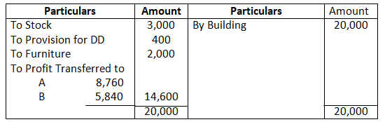 • Building to be appreciated by 20% and stock to be depreciated to 70%.