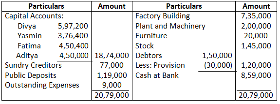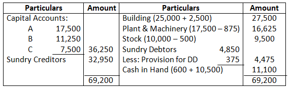 Prepare the Revaluation Account, Partner’s Capital Accounts and the Balance Sheet of the new firm.