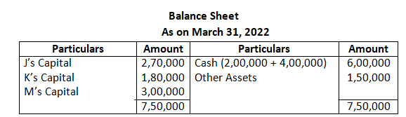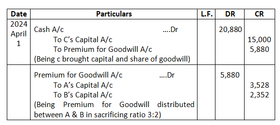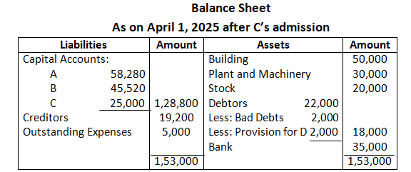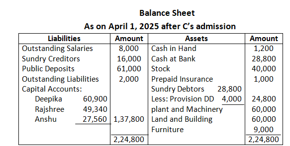 They decided to admit Mahesh on 1st April, 2024 for 1/5th share which Mahesh acquired wholly from Shyam on the following terms: