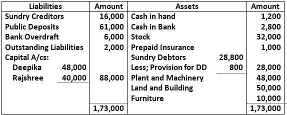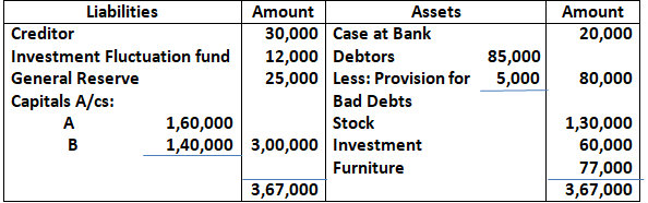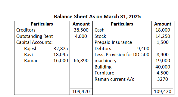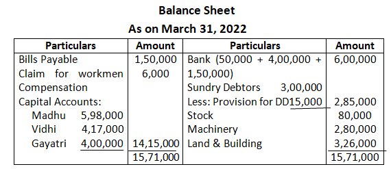 Q77. On 31st March, 2024 the Balance Sheet of Ram and Shyam who Share profits and losses in the ratio of 3:2 was as follows: