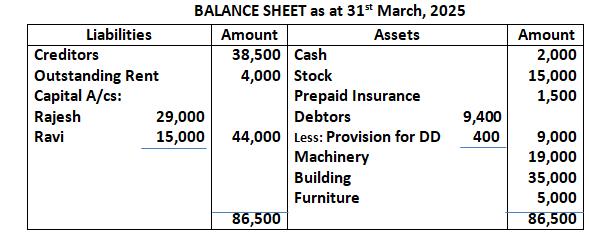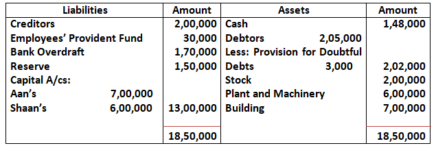 Q78. Aan and Shan were partners sharing profits in the ratio of 3:2. Their Balance Sheet as at 31st March, 2024 was as under: