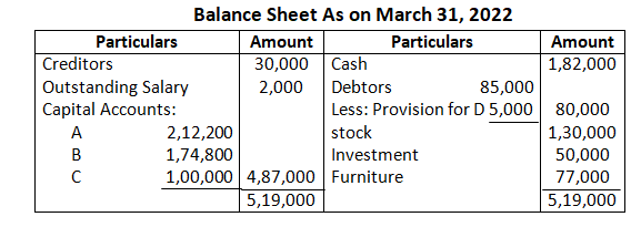 A sacrifices his share of profit in favour of C – 1/24