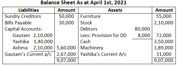 Solution – Old Profit Sharing Ratio amongst Partners (Mohan & Mahesh) is 3:2