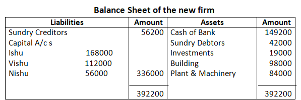 Balance Sheet in New Firm