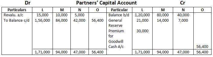 2. Goodwill of the firm was valued at 1, 80,000 and O brought his share of goodwill premium in cash.