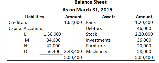Q75. L, M & N were partners in a firm sharing profit in the ratio of 3:2:1. Their Balance Sheet on 31st March, 2015 was as follows: