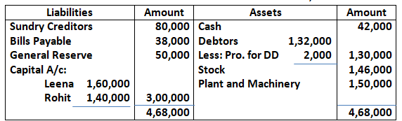 Balance Sheet of Leena & Rohit as on 31st March, 2018
