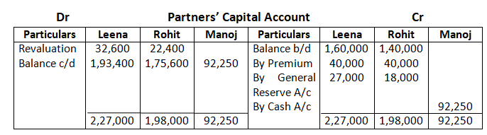 On the above date Manoj was admitted as a new partner for 1/5th share in the profits of the firm on the following terms: