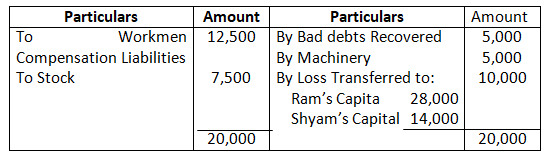 3. A Claim for 16,000 for workmen’s compensation was admitted.