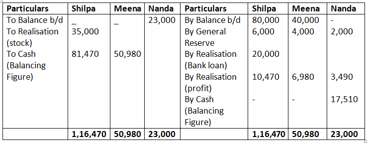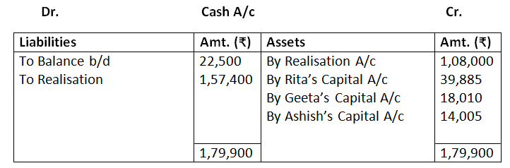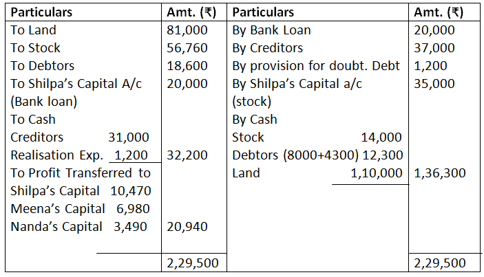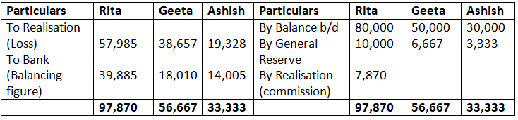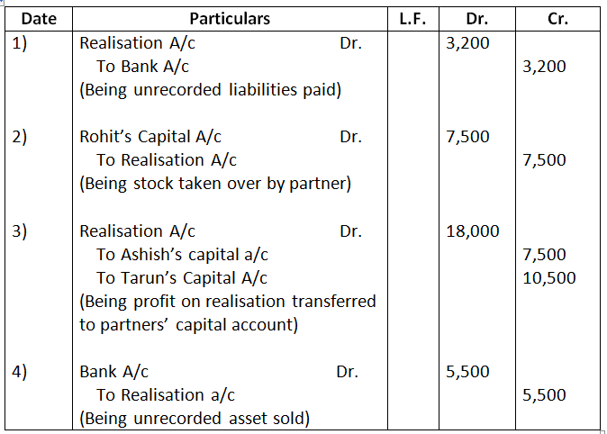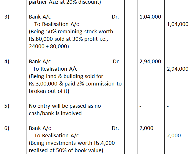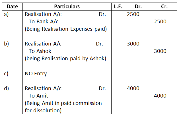 - Realisation expenses amounting to Rs.3,000 were paid by Ashok, one of the partners.