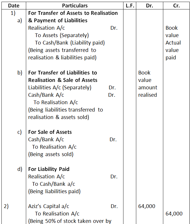 - To record the realization of various assets and liabilities.
