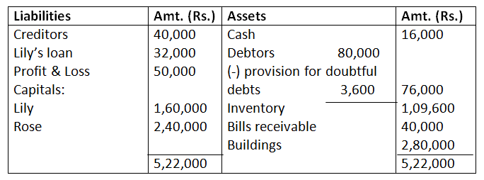 11. Rose and Lily shared profits in the ratio of 2:3. Their Balance Sheet on March 31, 2017 was as follows:
