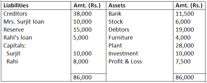 13. Surjit and rahi were sharing profits (losses) in the ratio of 3:2, their Balance Sheet as on March 31, 2017 is as follows: