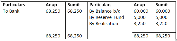 Prepare Realisation Account, Partners Capital Account, Bank Account.