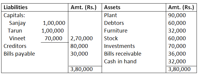 Balance Sheet of Sanjay, Tarun and Vineet
