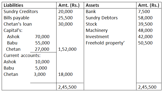 Balance Sheet of Ashok, Babu and Chetan