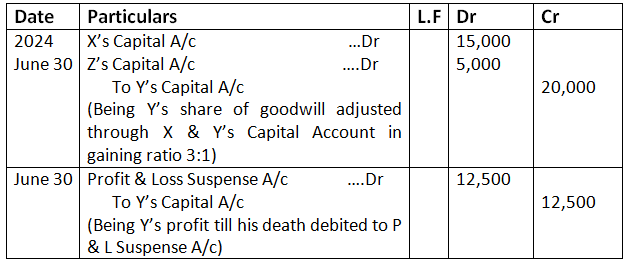 - Y’s share of profit or loss from 1st April, 2025 till his death was to be calculated on the basis of the profit or loss for the year ended 31st March, 2025.