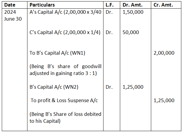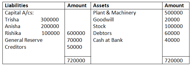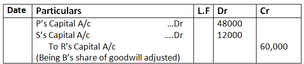 Bhim’s Share of Goodwill – 3, 00,000 x 1/5 – 60,000